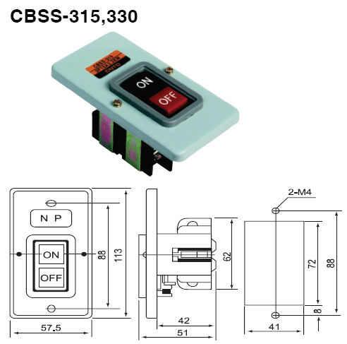 | CBSY-330 | 3 Φ 30A 3.7KW | Flush Mounting | M4 | Plastic |